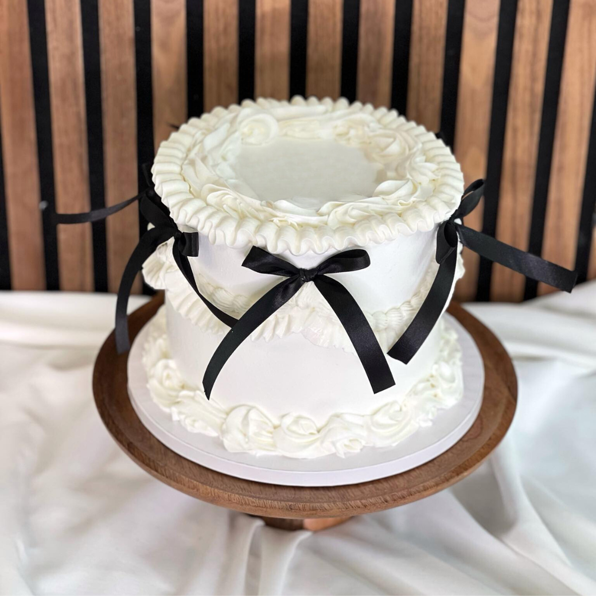 Fira med en vacker Vintage tårta, perfekt för födelsedagar och speciella tillfällen. Denna handgjorda tårta har en charmigt design med mjuk smörkrämsfrosting och eleganta spritsade detaljer som ger en nostalgisk känsla. Beställ denna unika tårta för att ge din fest en elegant och personlig touch.